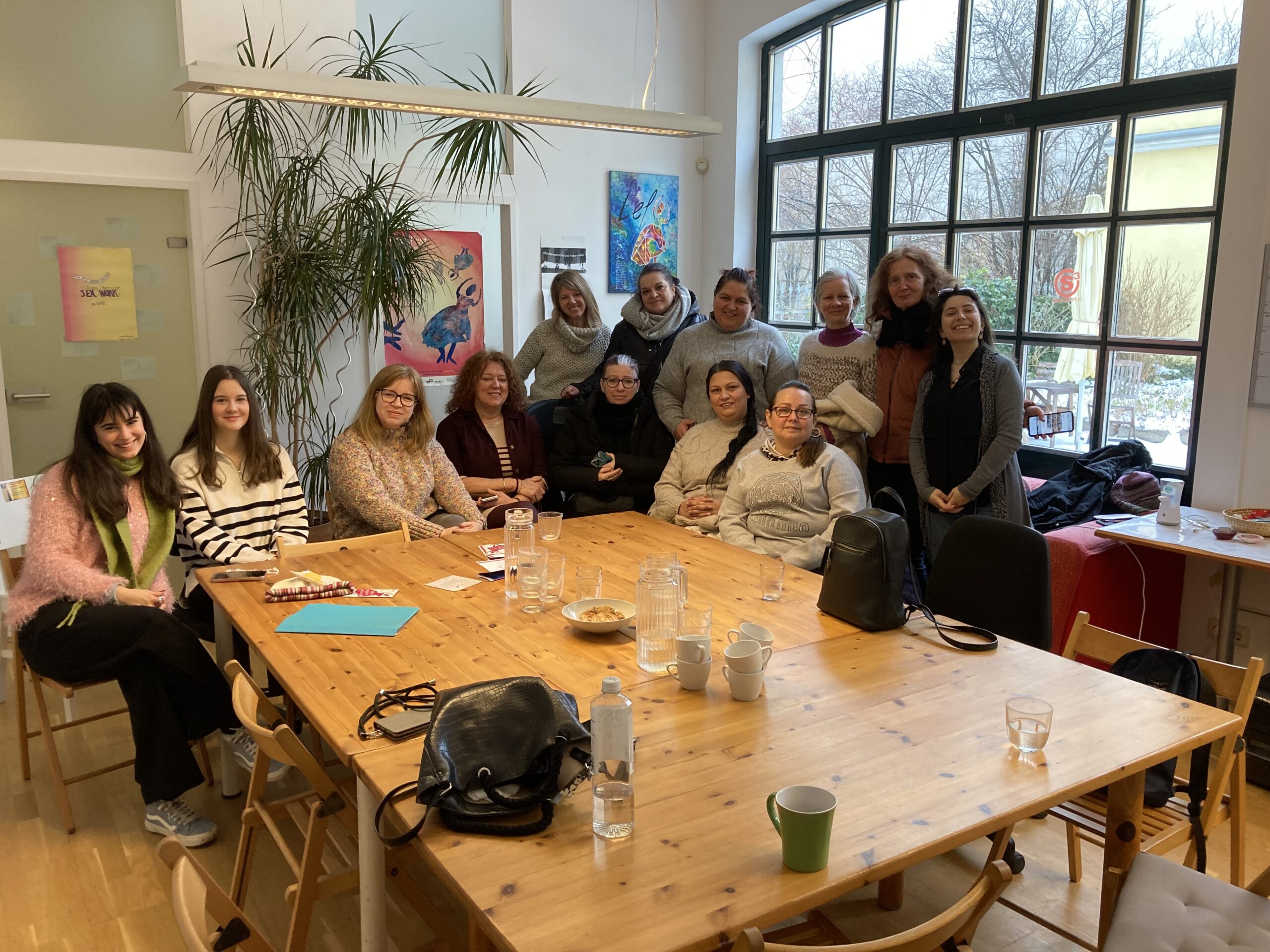 Wir verbrachten die gemeinsame Zeit damit, über die Geschichte von LEFÖ und unsere Arbeit zu sprechen, über die politische Lage in Österreich und in Europa, insbesonders im Zusammenhang mit dem Sozialsystem, und diskutierten strukturelle Schwierigkeiten, mit denen Migrantinnen* in Österreich konfrontiert sind.